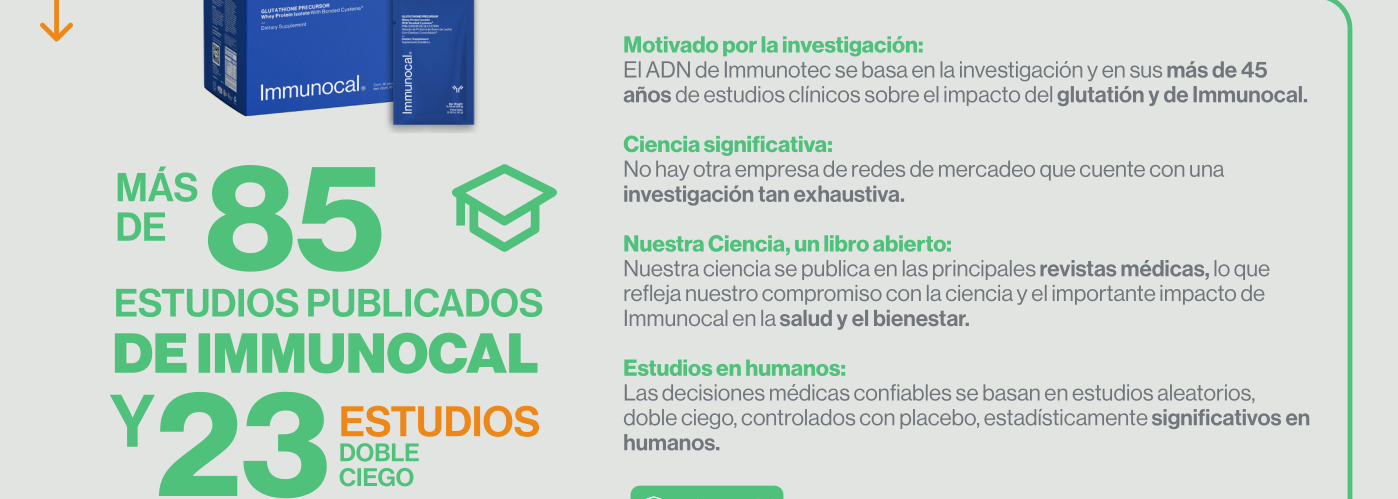 Immunocal está respalado por más de 45 años de investigación clínica, cuenta con gran evidencia científica y millones de testimonios en diversas patologías.